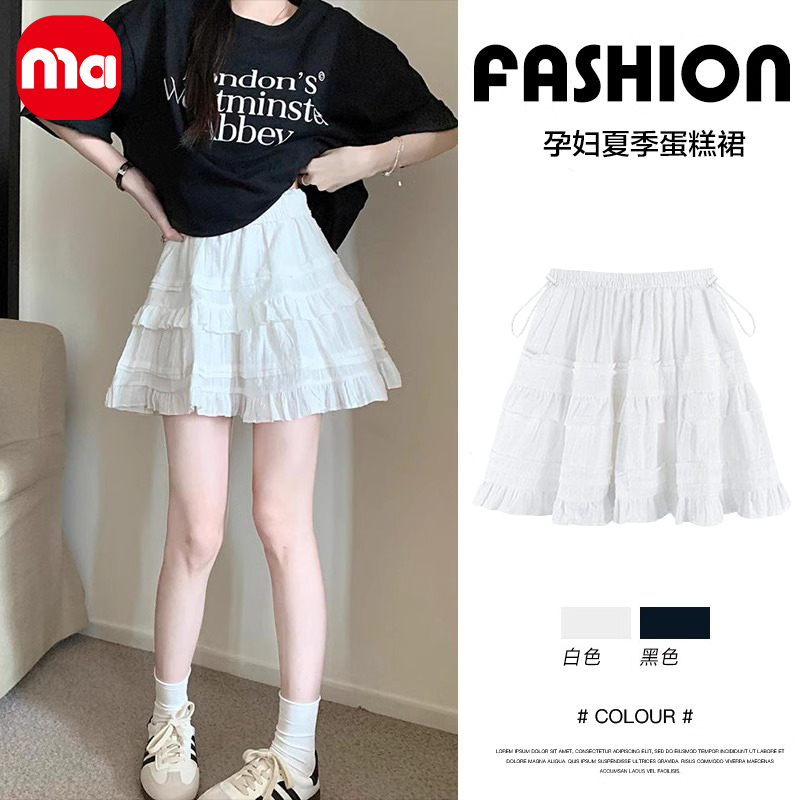 MA媽孕婦半身裙夏季薄款外穿蕾絲蛋糕裙小個子芭蕾風高腰褶皺短裙