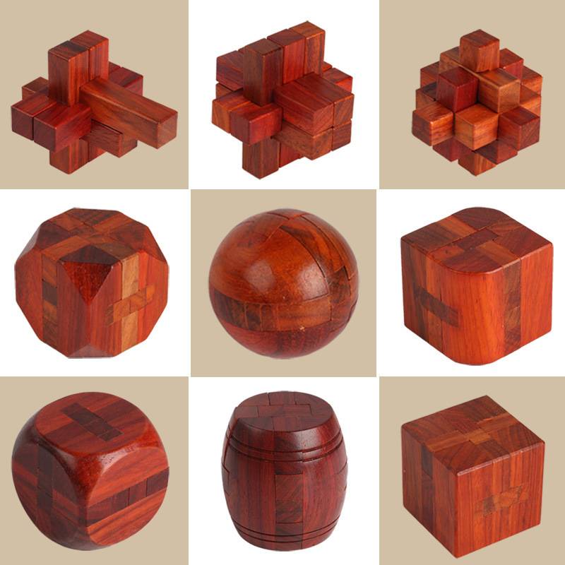 傳統紅木魯班鎖花梨木孔明鎖燒腦成人解密小學生益智榫卯積木玩具