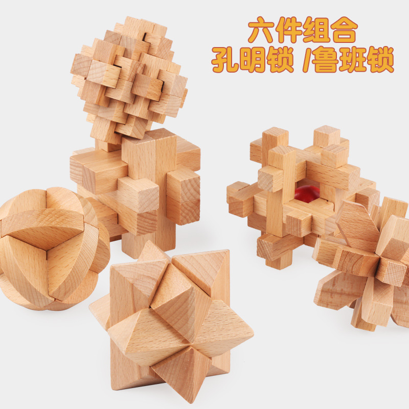 兒童益智禮榫卯HMZ孔物明鎖魯班鎖全套木質歲套品具裝禮玩大型懷