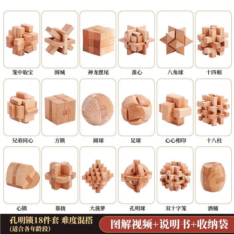 孔明鎖魯班鎖全套智力解環套裝木制小學生兒童九連環益智玩具36套