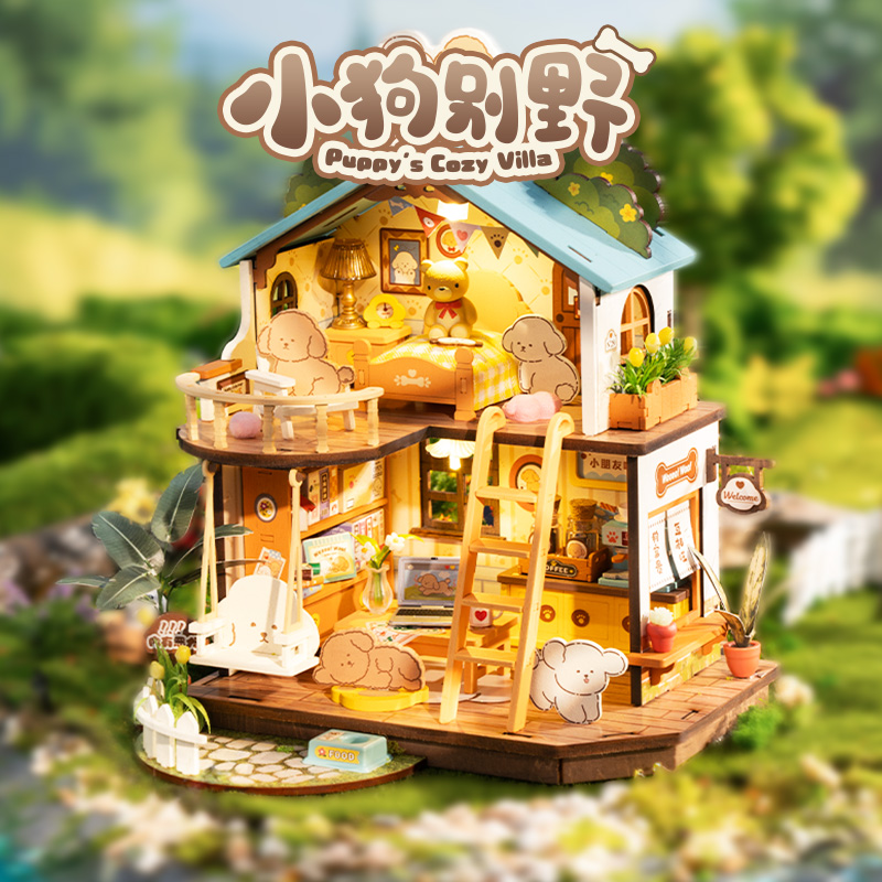 若態若來小狗別野DIY手工小屋木質拼裝積木微縮場景模型生日禮物
