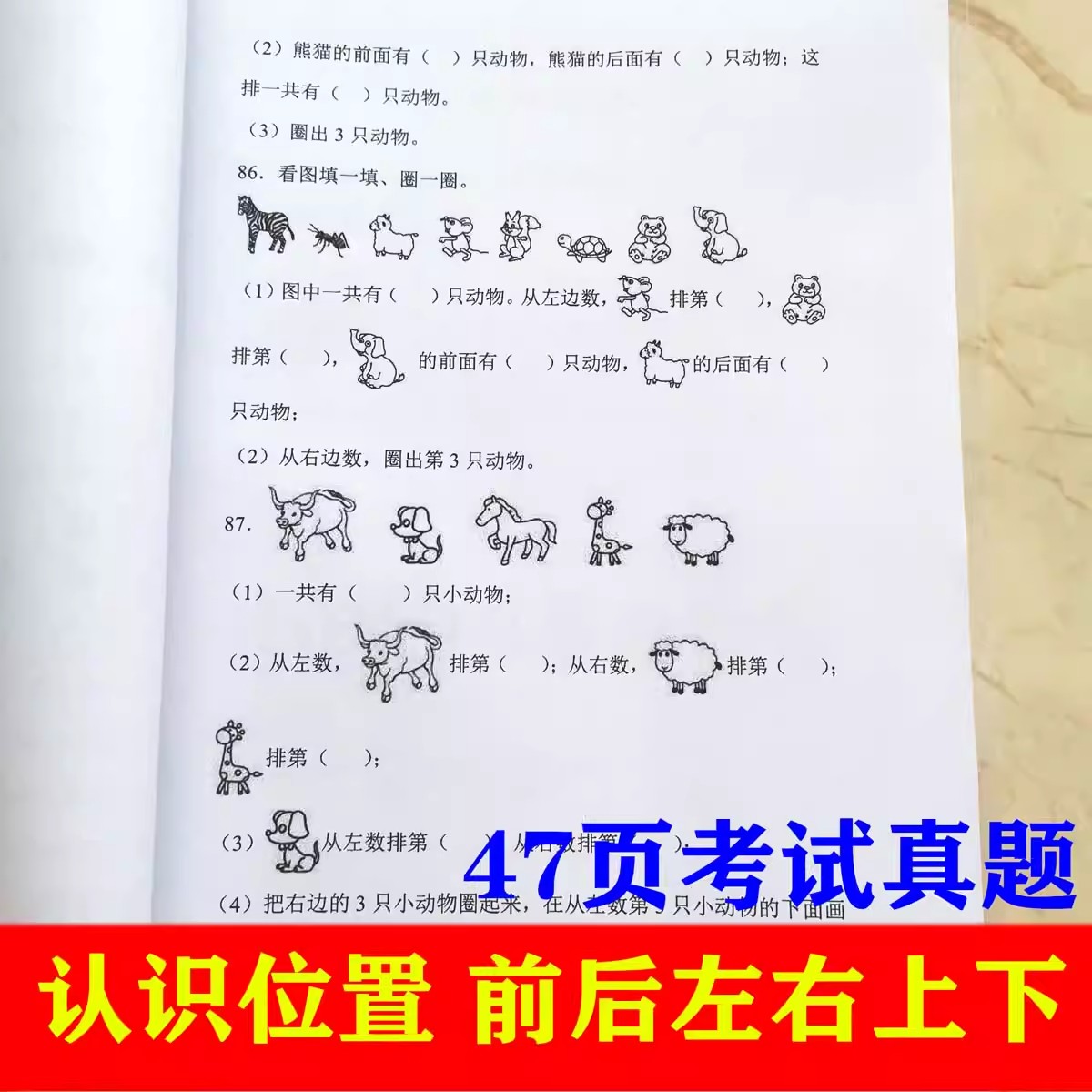 一年級數學上下冊認識位置順序方向前后左右上下排序專項訓練習題