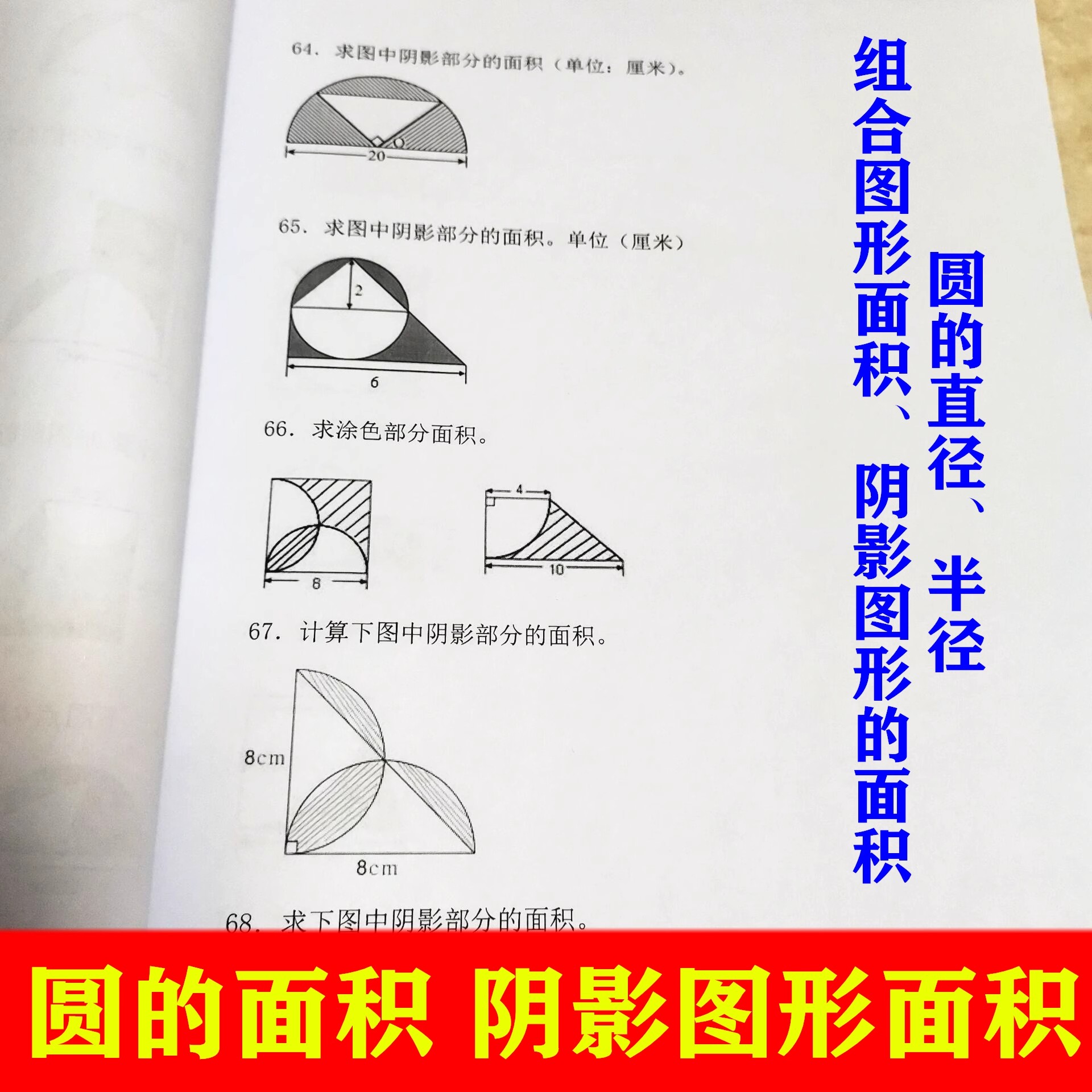 六年級數學上冊圓的面積組合圖形面積半徑單位換算周長直徑計算題