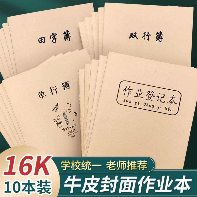 牛皮紙封面B5作業登記本16k科目本子 田字 雙行 單行本學生作業本