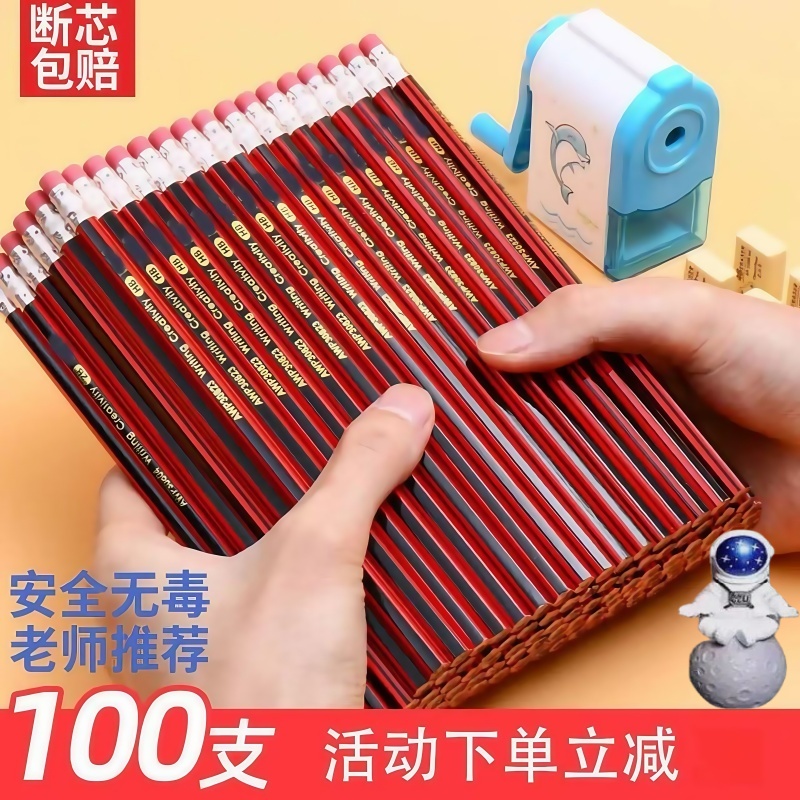 100支HB鉛筆小學生專用帶橡皮擦頭桶裝兒童卡通幼兒園一年級學生二年級學習文具用品獎品考試素描鉛筆批發