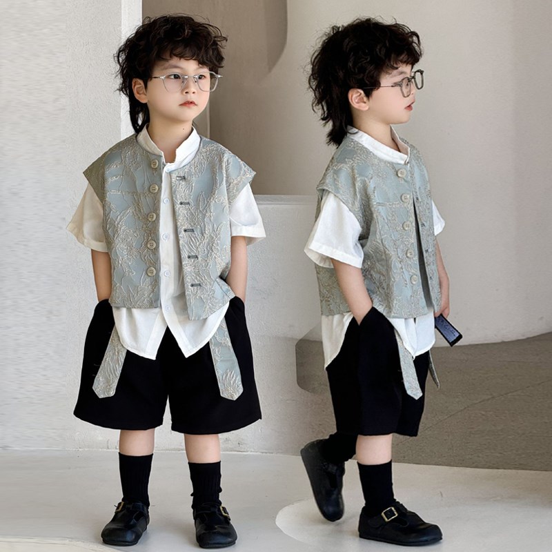 兒童西裝馬甲套裝夏季英倫風花童AA男童禮服2023新款小主持人演出