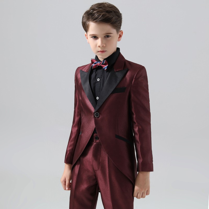 兒童燕尾服男童i西服套裝帥氣鋼琴演出表演服合唱團指揮禮服三件