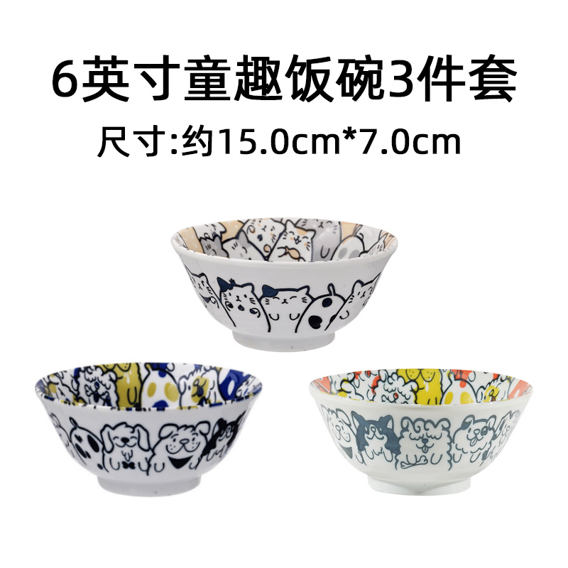 【6個方盤】家用陶瓷盤子加厚菜盤碟子創意深盤卡通飯盤波爐餐具