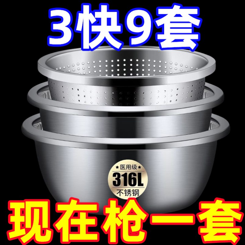 【清倉】不銹鋼瀝水籃洗菜盆食品級廚房用具多用大盆淘米盆和面盆