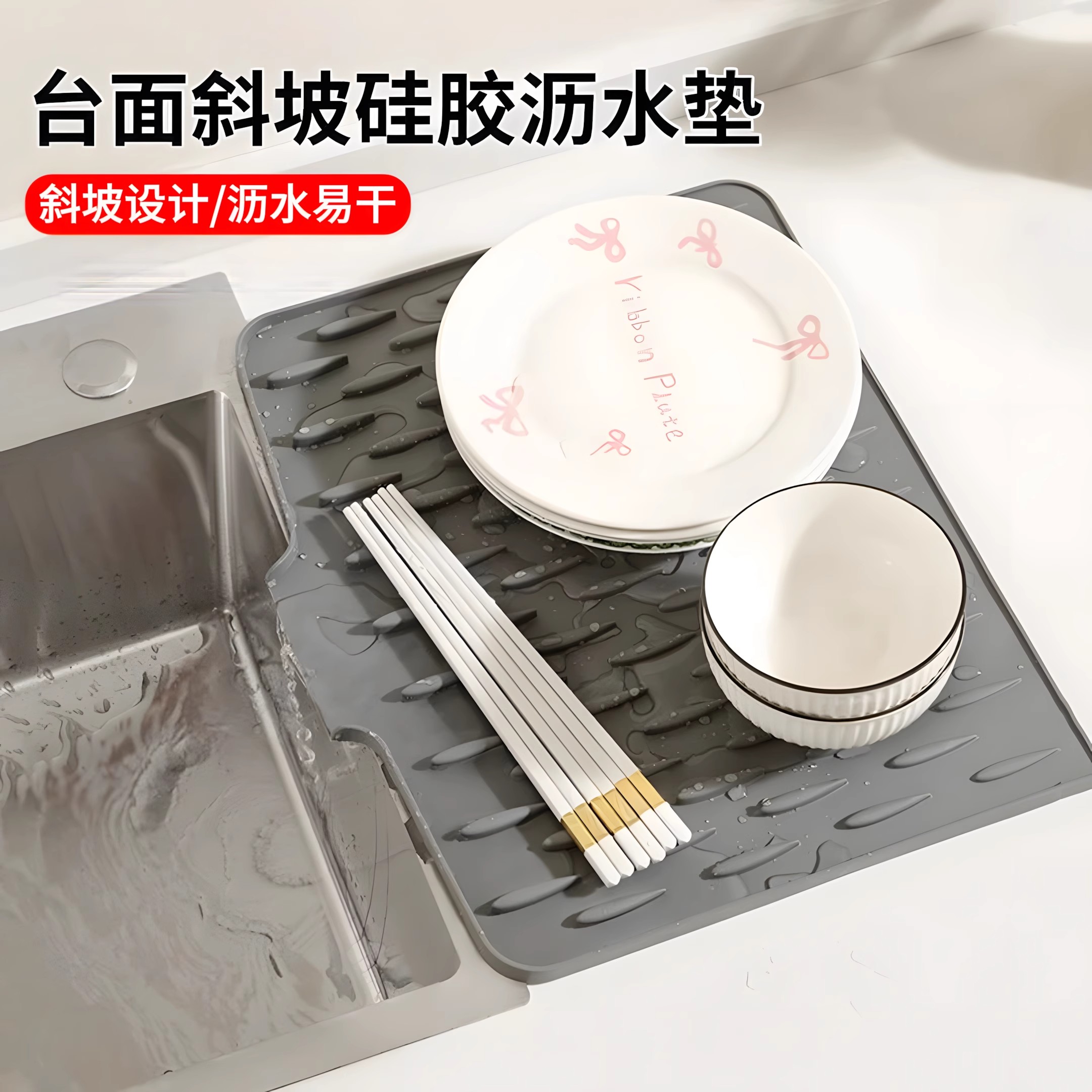 硅膠瀝水墊水槽導流式廚房果蔬碗碟濾水干燥墊家用臺面鍋墊隔熱墊
