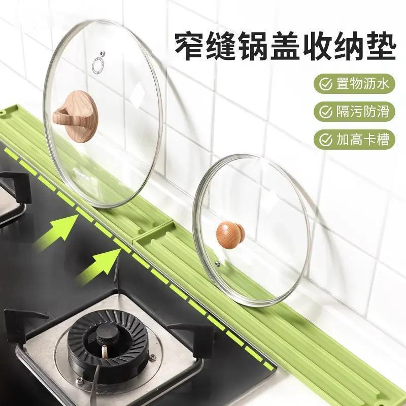硅膠窄縫鍋蓋墊廚房灶臺窄邊鍋蓋收納防滑放置墊砧板控水瀝水墊子
