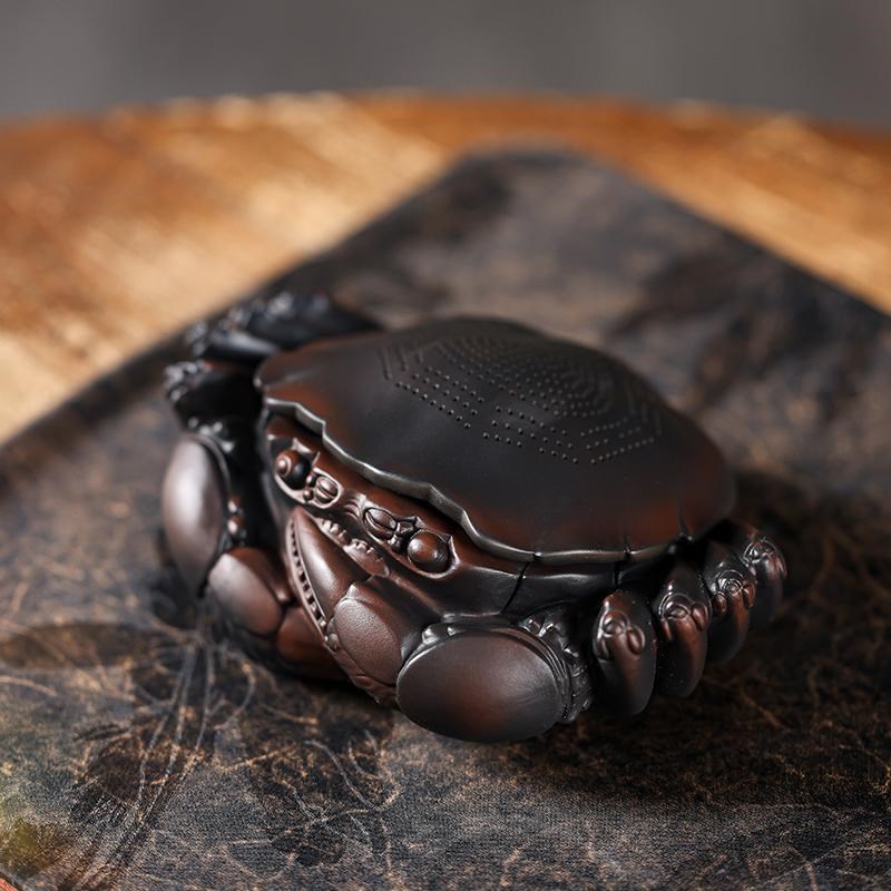 創意紫陶螃蟹過濾器陶瓷茶漏茶濾網全瓷一體茶寵擺件可養茶道零配