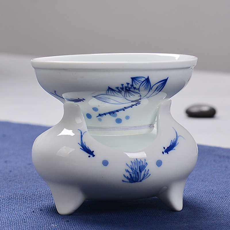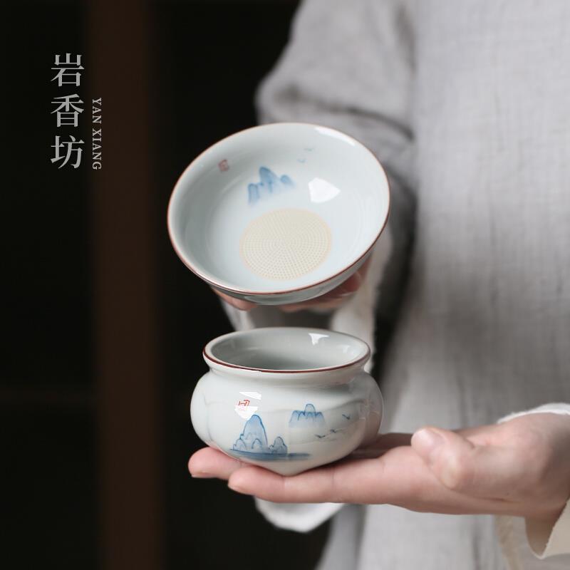 巖香坊手繪山水陶瓷一體茶漏釉下彩茶具過濾器茶道配件茶濾中式