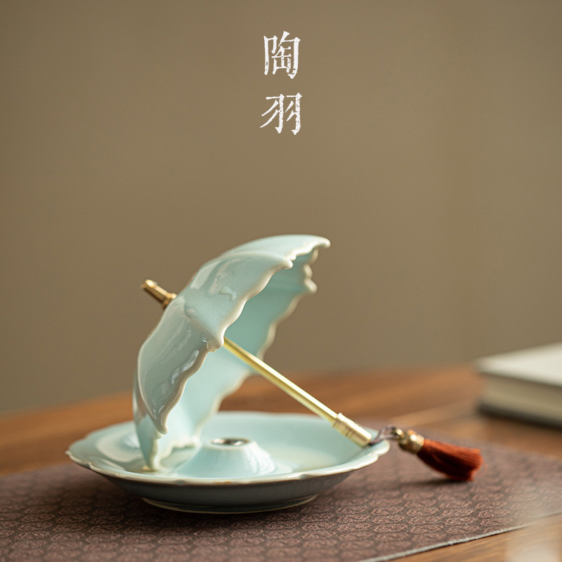 汝窯天青創意雨傘茶濾旋轉汝瓷茶漏手工家用大濾茶網濾茶器茶擺件