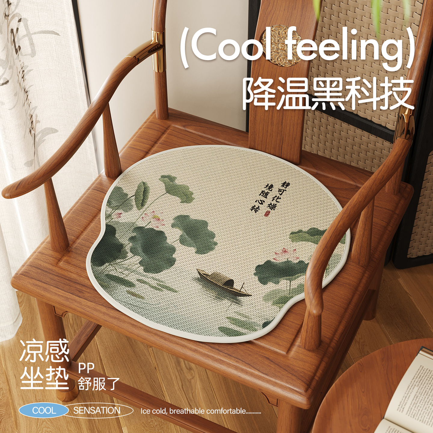 新中式冰絲透氣夏椅子坐墊屁墊夏季涼席墊凳子墊子辦公室久坐椅墊