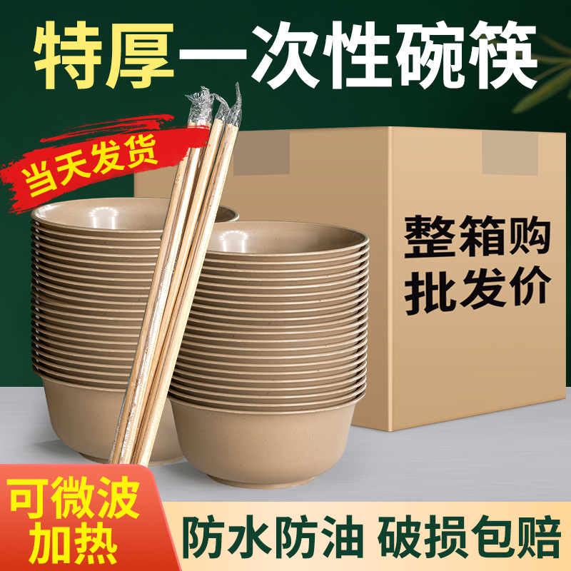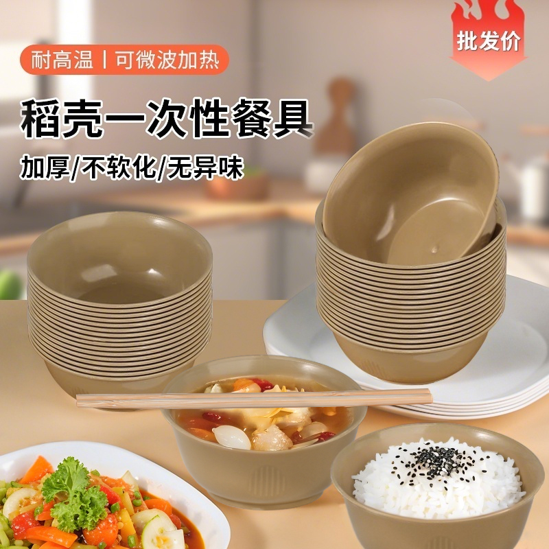 稻殼一次性碗筷套裝食品級家用飯碗加厚耐高溫面碗過年結婚整箱批