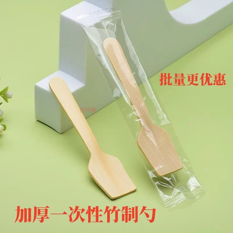 一次性加厚竹勺子外賣打包竹勺甜品勺冰激凌勺西餐可降解環保餐具