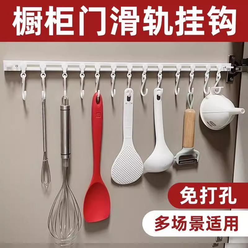 廚房收納滑動軌道掛鉤柜門收納掛鉤神器免打孔櫥柜門后收納置物架