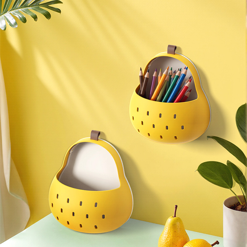 趣味卡通創意秋月梨收納盒筷子廚具瀝水籃衛生間收納磁吸無痕貼款