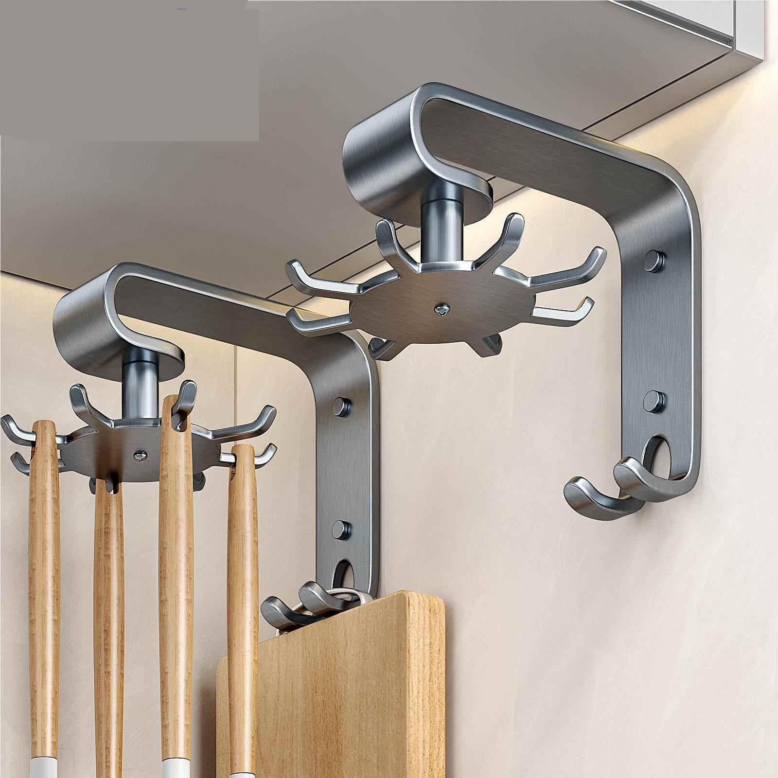 廚房多功能八爪魚旋轉掛鉤免打孔壁掛鍋鏟勺子菜板掛架上墻置物架