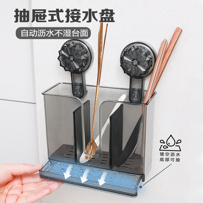 筷子筒吸盤式筷子收納壁掛式廚房置物架免打孔勺子收納盒瀝水筷籠