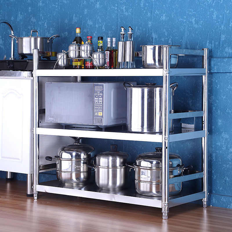 廚房置物架圍欄不銹鋼貨架落地多層微波爐廚房收納架儲物三層架子