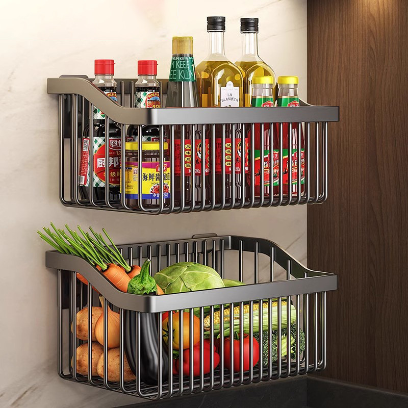 廚房置物架壁掛免打孔調料收納蔥姜蒜家用大全多功能墻上蔬菜籃子