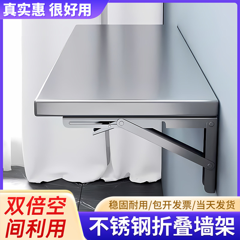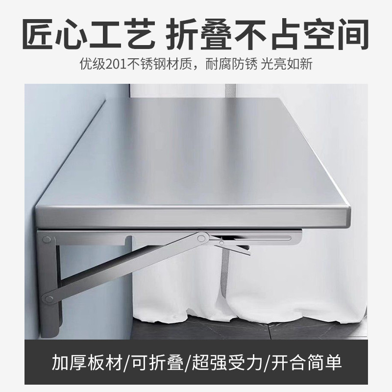 不銹鋼一字隔板廚房簡易可折疊桌創意餐桌壁掛墻壁墻上儲物置物架