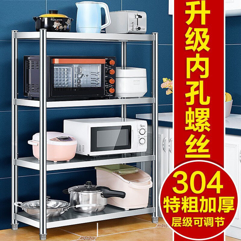 廚房置物架304不銹鋼落地加厚收納儲物微波爐烤箱放鍋儲物貨架子