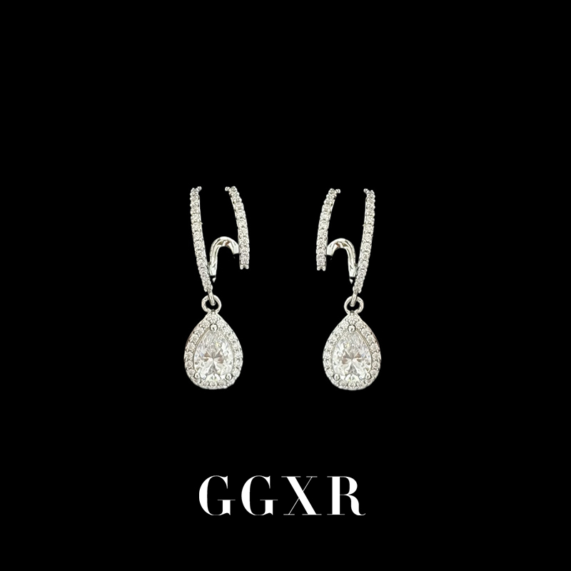 GGXR 鑲鉆水滴耳環無耳洞耳夾度假風飾品女無耳洞復古顯臉小飾品