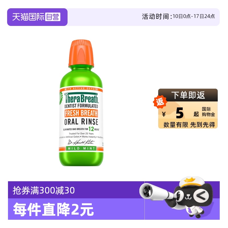 【自營】TheraBreath凱斯博士溫和薄荷漱口水473ml無酒精清新口氣