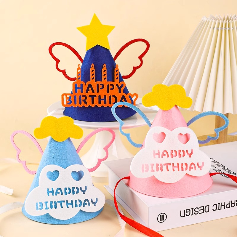網紅毛氈生日帽兒童成人寶寶周歲卡通星星小帽子生日快樂派對裝扮