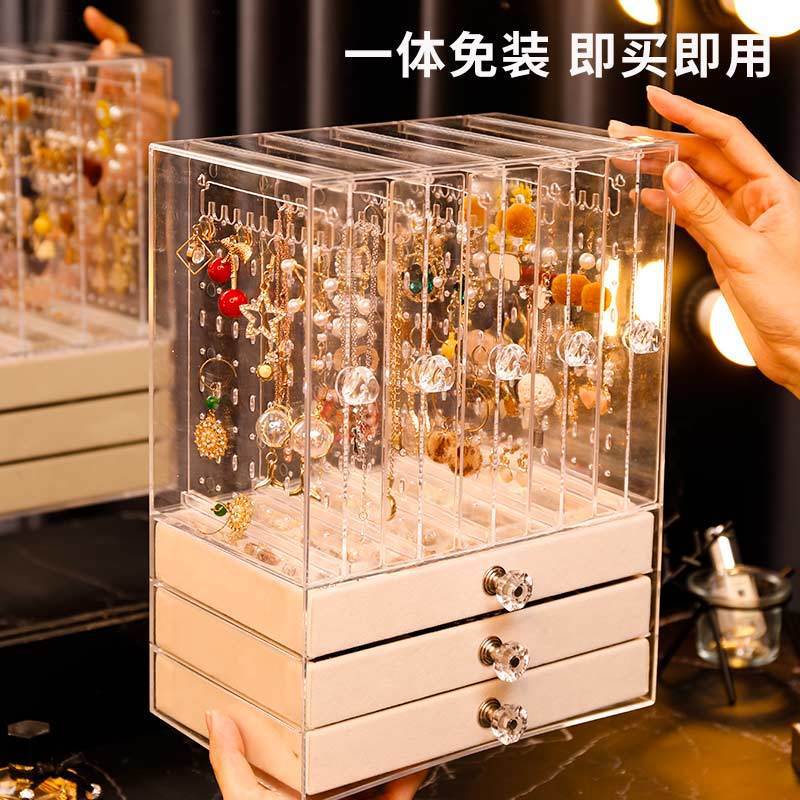 多層首飾架抽屜透明耳環盒子收納首飾盒梳妝臺防塵耳釘高級感分裝