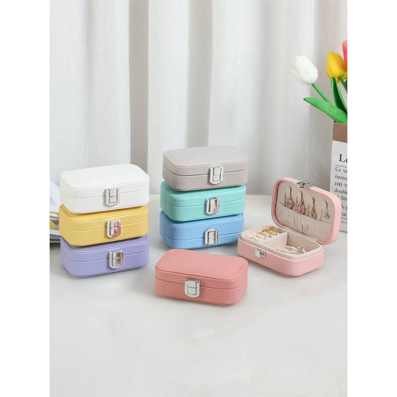 PU皮質首飾盒珠寶首飾收納盒便攜出行公主少女心白色簡約