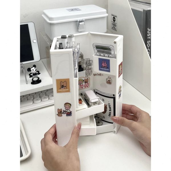 小型迷你機器人文具收納盒桌面辦公收納柜時尚小清新筆筒可愛抽屜