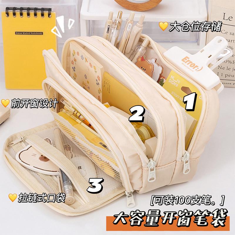 三層超大容量開窗筆袋 2023年新款女生簡約文具盒女孩版小學生初