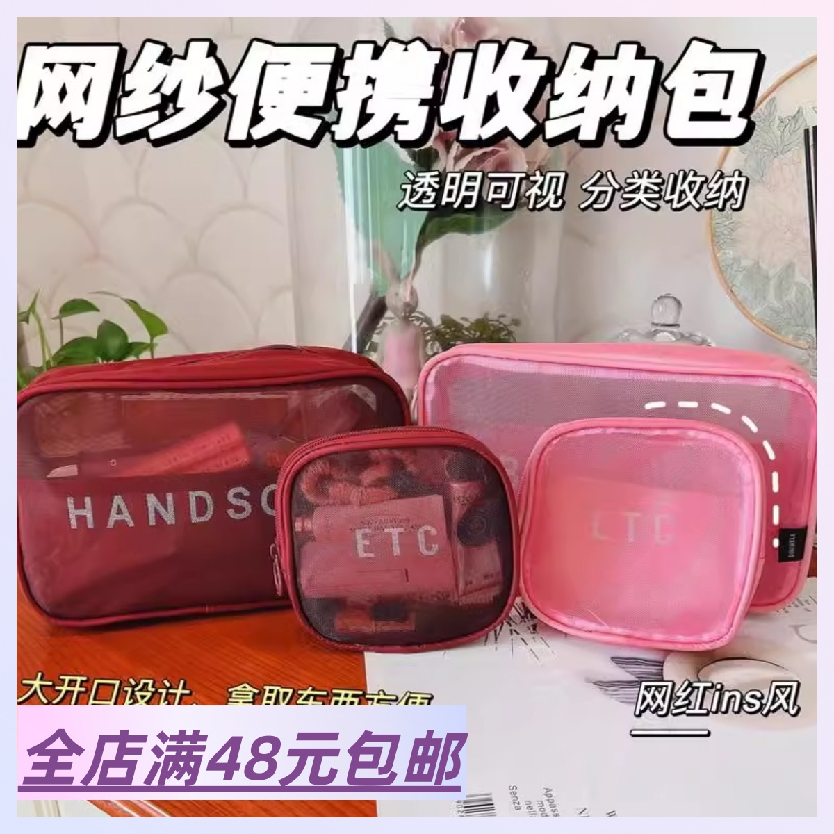清倉白菜價 便攜可視細密網紗手拿化妝包洗漱包充電器數碼收納包