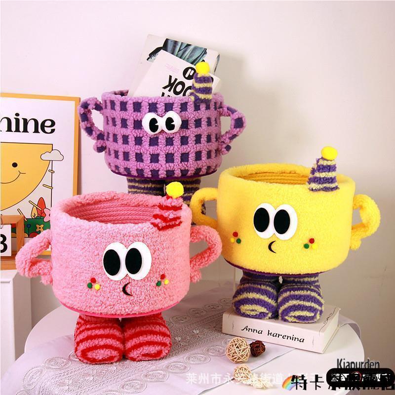 卡通小怪獸收納筐編織客廳玩具零食籃可愛家居擺件兒童禮物水果籃