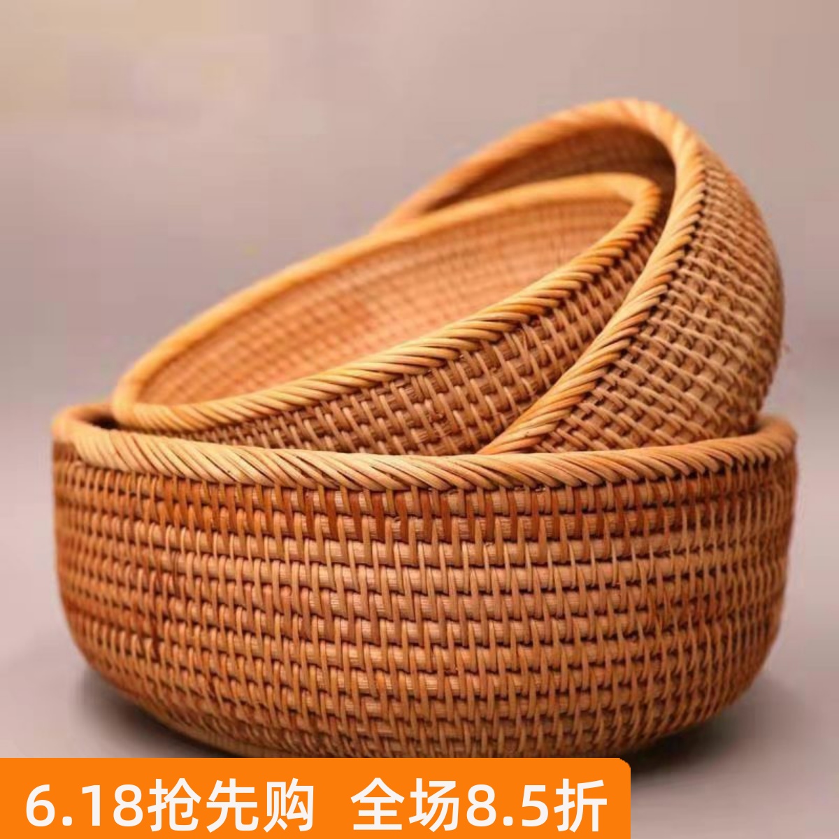 越南藤編收納筐零食干果物品茶幾化妝品編織收納盒創意水果籃子