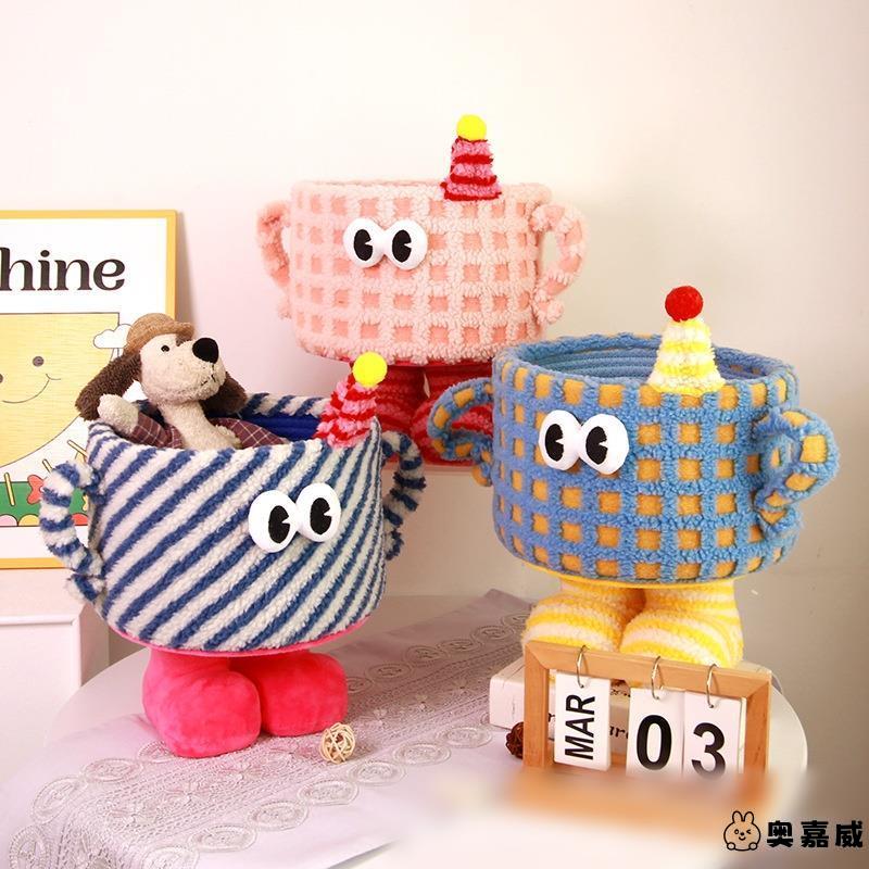 卡通小怪獸收納筐桌面棉繩客廳雜物玩具零食整理籃擺件禮物置物筐