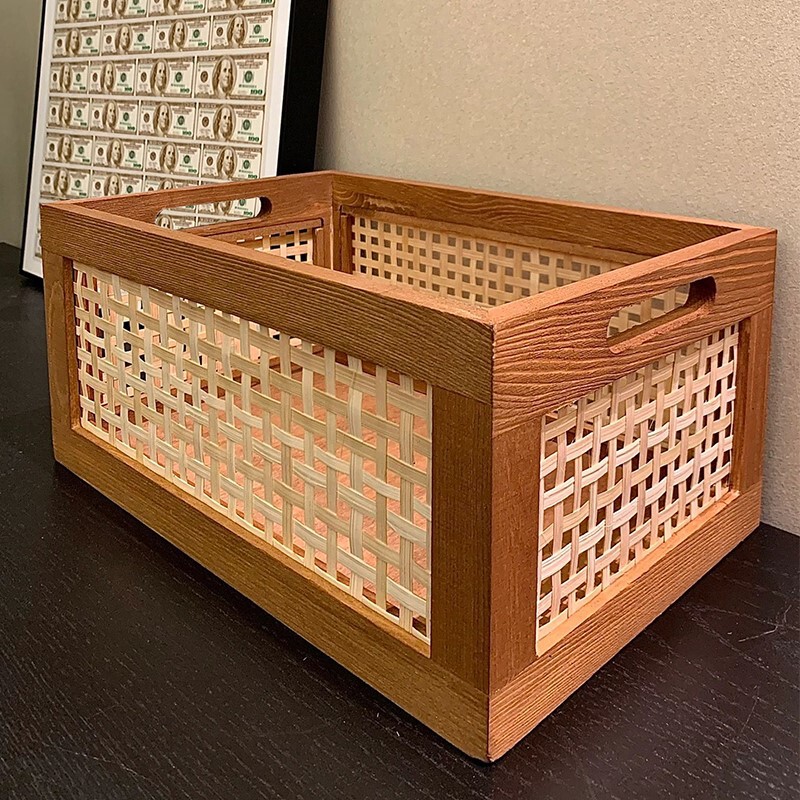 桌面復古收納筐籃子竹編仿藤編實木收納盒日式木質長方形置物架