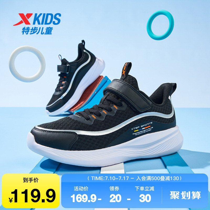 特步童鞋兒童魔術貼跑步鞋男童網面透氣運動鞋中大童輕便軟底鞋子