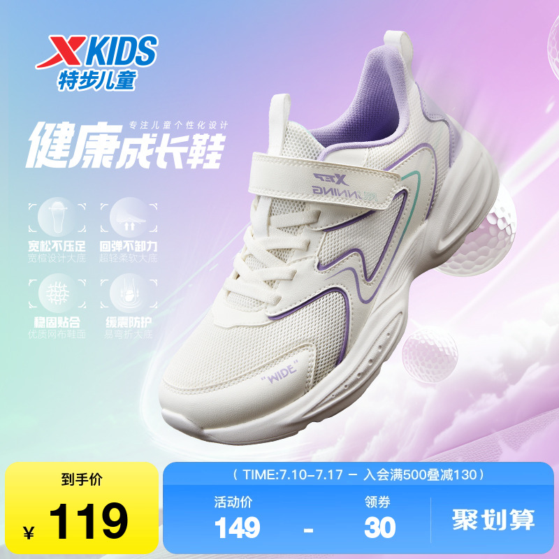 特步童鞋兒童百搭運動鞋春季新款中大童舒適軟底女童防滑耐磨跑鞋