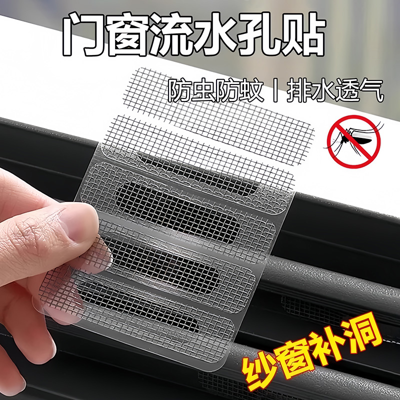 紗窗補洞貼門窗流水孔修補貼自粘貼條排水口漏水孔紗網破洞魔術貼