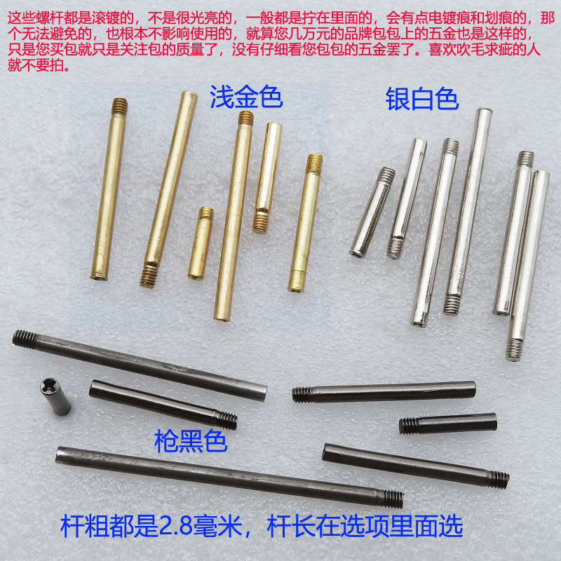 箱包女包鎖扣提手扣子螺絲桿子配件金銀色單頭十字一字長螺桿棍子
