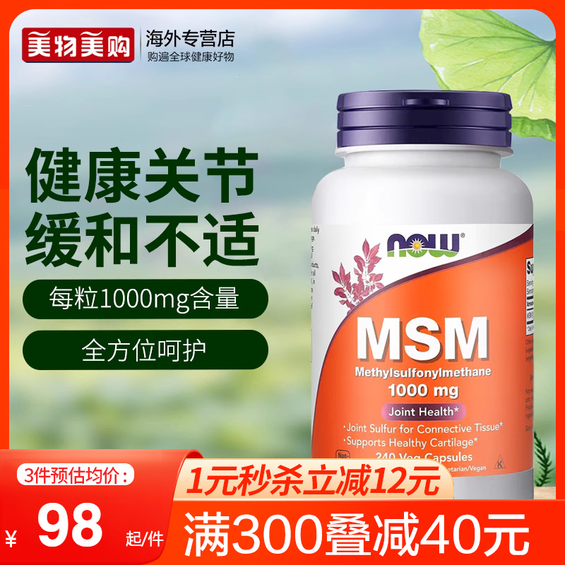 NOW foods諾奧美國進口MSM維骨力中老年人保護關節滋養軟骨補充劑