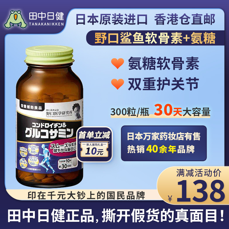 野口醫學研究所日本進口氨糖鯊魚軟骨素膠囊護膝蓋關節疼痛300粒