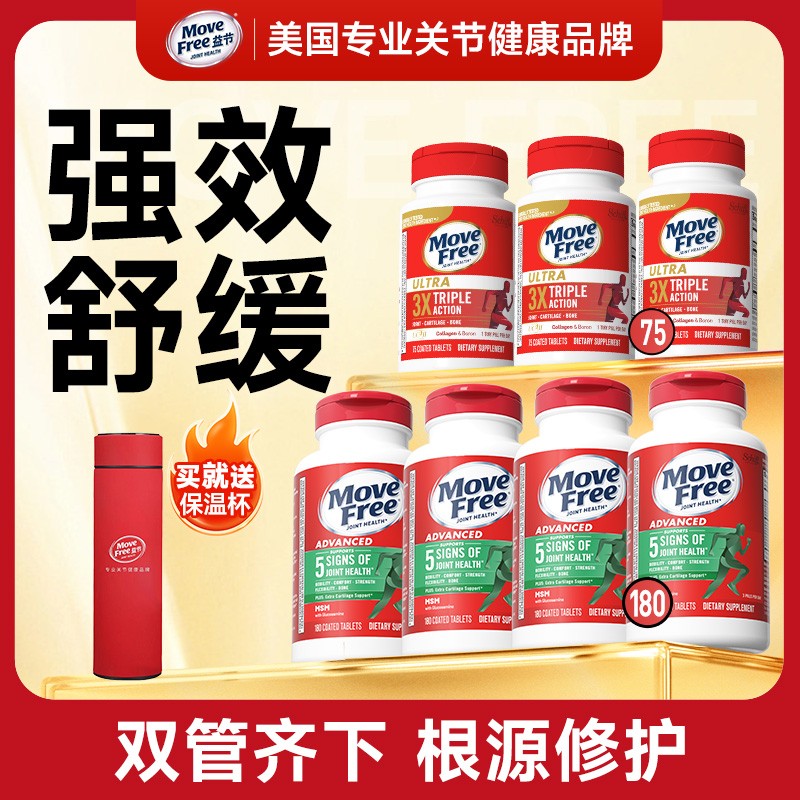 MoveFree益節維骨力鹽酸氨基葡萄糖軟骨素優骨力紅瓶200粒關節*3