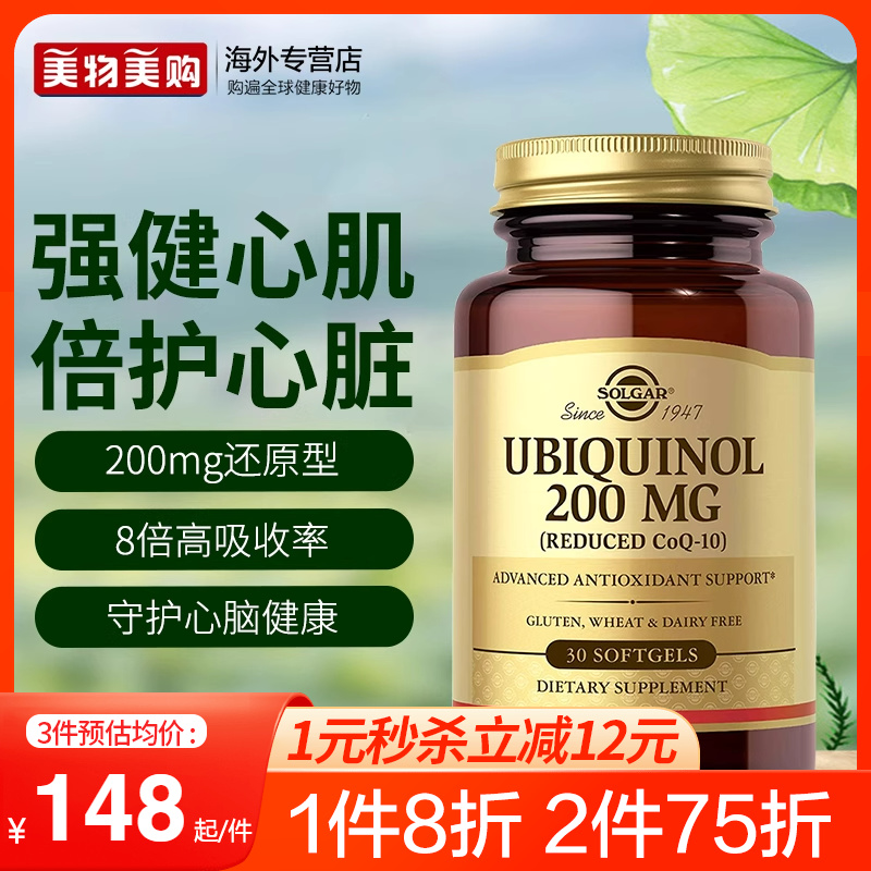 Solgar美國原裝進口200mg還原型泛醇輔酶軟膠囊保護心臟心肌健康