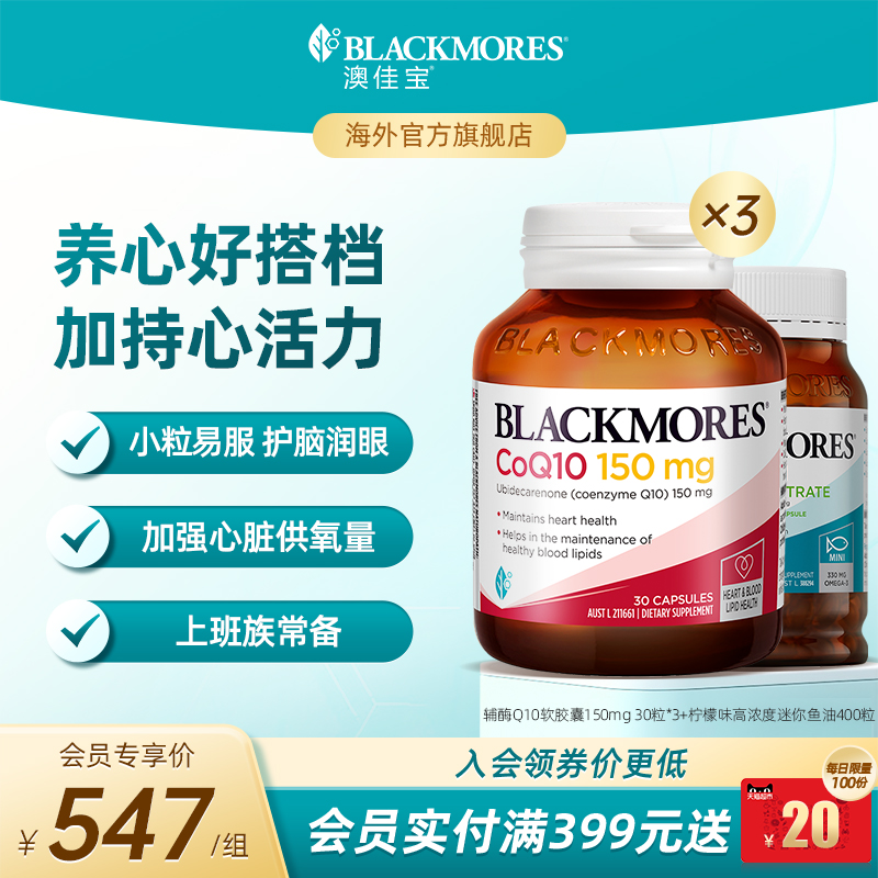 澳佳寶BLACKMORES輔酶素q10心肌150mg*3+小粒魚油*1